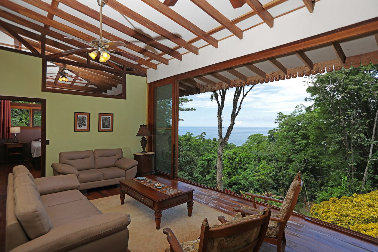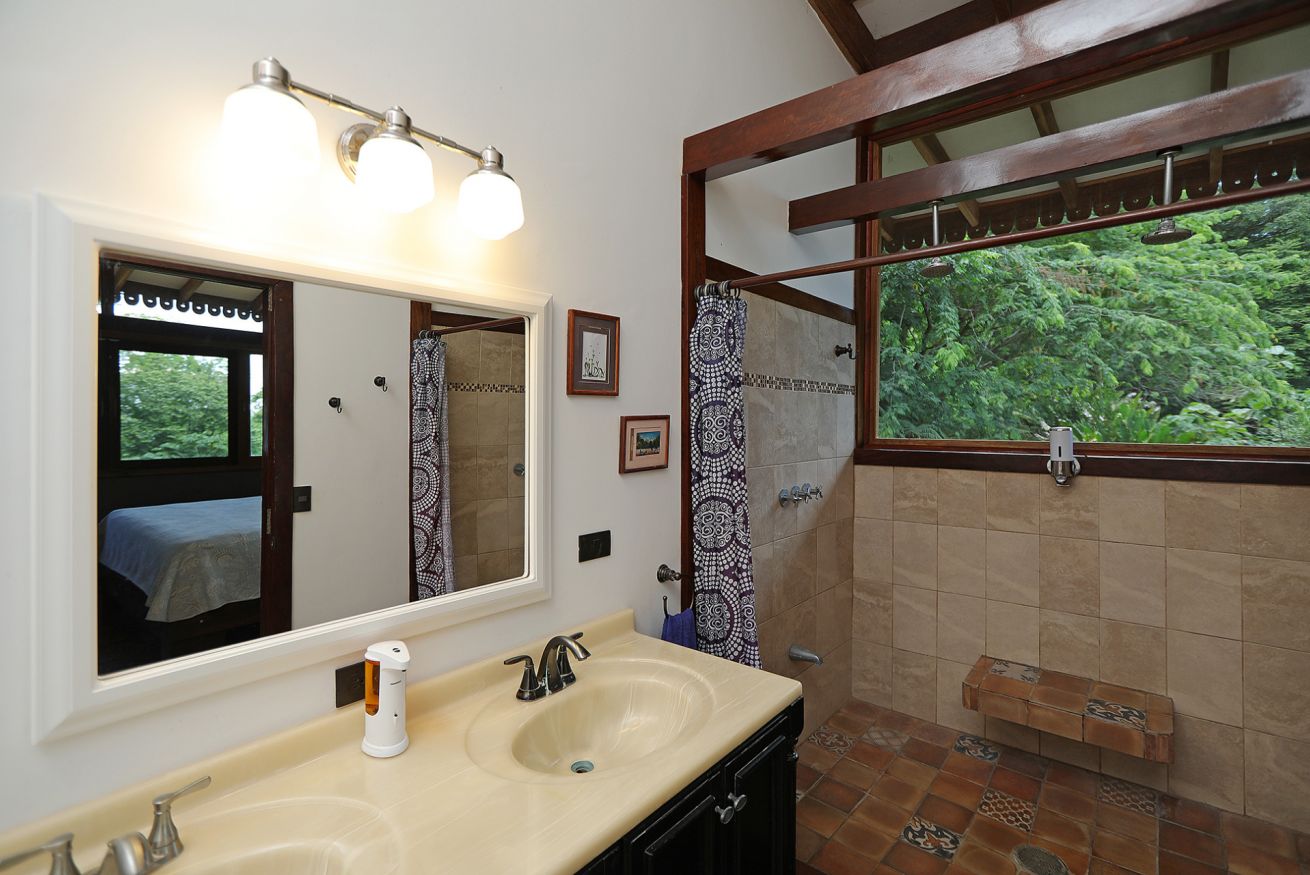 Discover the perfect blend of comfort and nature in this enchanting wooden hideaway with breathtaking ocean and tropical forest views. This cozy retreat features two charming bedrooms, each with a comfortable double bed and a private bathroom, letting you wake up to the serene beauty of the lush jungle.
